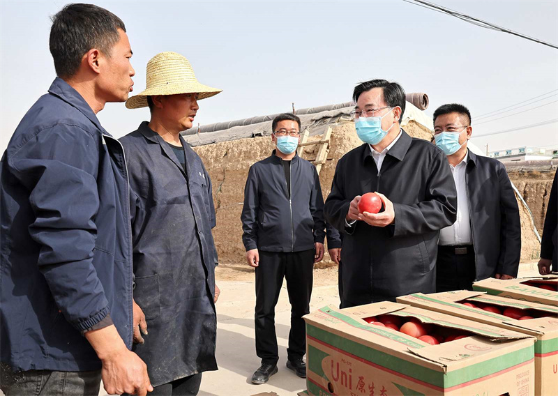 在白銀區(qū)武川鄉(xiāng)紅峴村、靖遠(yuǎn)縣東灣現(xiàn)代農(nóng)業(yè)產(chǎn)業(yè)園,胡昌升走進(jìn)田間地頭、蔬菜大棚,與正在勞作的群眾親切交流,詳細(xì)詢問(wèn)春耕生產(chǎn)、鄉(xiāng)村振興等情況。他強(qiáng)調(diào),要做好農(nóng)資農(nóng)機(jī)服務(wù)保障,加強(qiáng)農(nóng)業(yè)技術(shù)指導(dǎo),全力抓好春耕生產(chǎn)。要善于挖掘和利用本地優(yōu)勢(shì)資源發(fā)展特色富民產(chǎn)業(yè),培育壯大新型農(nóng)業(yè)經(jīng)營(yíng)主體,提升組織化集約化水平,促進(jìn)農(nóng)業(yè)增產(chǎn)增效、農(nóng)民增收致富。要落實(shí)五級(jí)書記抓鄉(xiāng)村振興要求,發(fā)揮好基層黨組織和黨員干部作用,更好組織群眾、宣傳群眾、凝聚群眾、服務(wù)群眾,緊緊圍繞促進(jìn)農(nóng)民增收這個(gè)中心任務(wù),把黨組織建在產(chǎn)業(yè)鏈上,把黨員聚在產(chǎn)業(yè)鏈上,讓群眾富在產(chǎn)業(yè)鏈上,把黨的組織優(yōu)勢(shì)轉(zhuǎn)化為加快鄉(xiāng)村發(fā)展的實(shí)際成效。