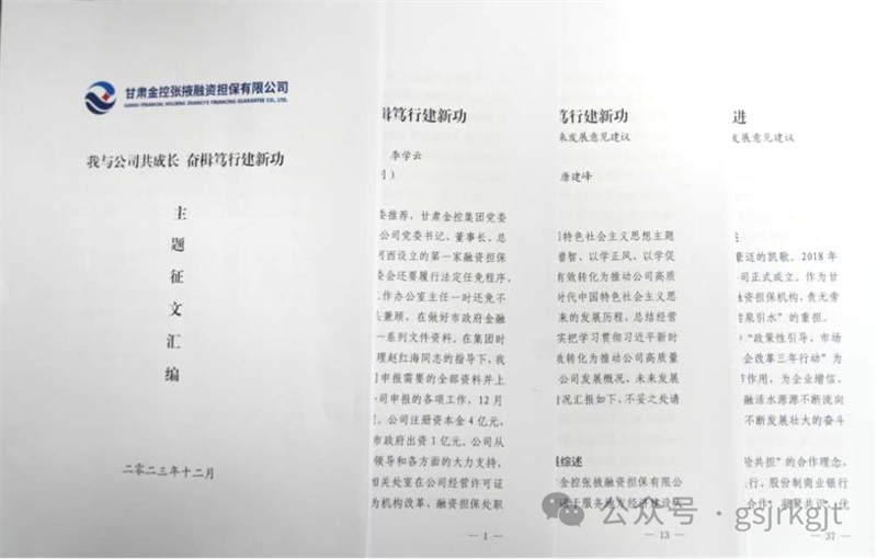 一、開(kāi)展一次主題征文活動(dòng)為切實(shí)將主題教育激發(fā)的動(dòng)力有效轉(zhuǎn)化為推動(dòng)高質(zhì)量發(fā)展的實(shí)績(jī),金控張掖擔(dān)保組織全員開(kāi)展了“我與公司共成長(zhǎng),奮楫篤行建新功”主題征文活動(dòng)。征文通知發(fā)出后,公司領(lǐng)導(dǎo)班子帶頭,積極踴躍投稿,全員結(jié)合五年來(lái)的工作實(shí)際談感悟、說(shuō)想法、講實(shí)績(jī)、找不足、獻(xiàn)良策。征集到的13篇稿件既有高度又有深度,達(dá)到了共話(huà)成就、共謀發(fā)展、共同進(jìn)步的預(yù)期效果。