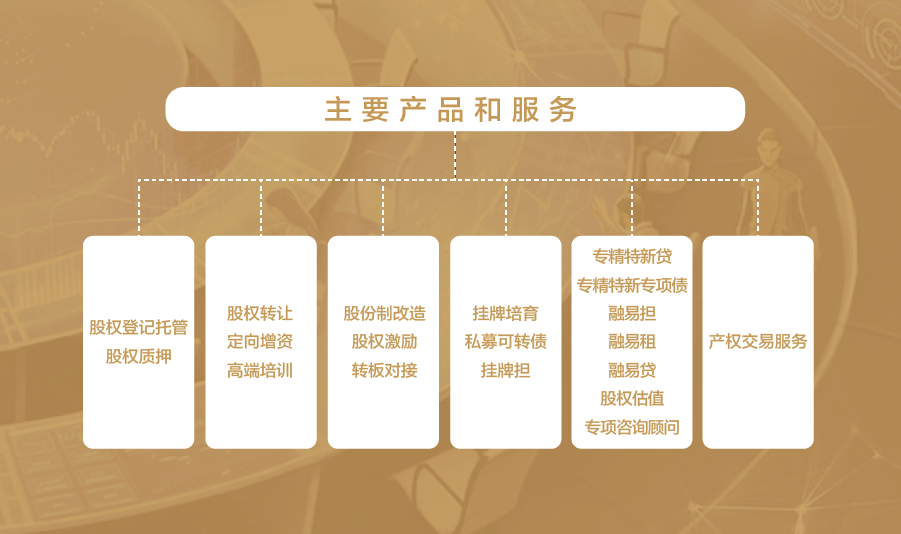 經營范圍包括:為非上市企業的股權登記、托管、轉讓、交易、融資、結算、過戶、分紅、企業規范、培育等提供場所和服務;組織和監督股權托管交易活動;發布市場交易信息;為非上市公司進場掛牌提供融資、咨詢等綜合服務;為各類企業提供股權轉讓及增資擴股、實物資產、債權、不良資產和集中采購等產權交易業務服務,以及政策咨詢、方案設計、項目推介、資產盡調等增值服務。